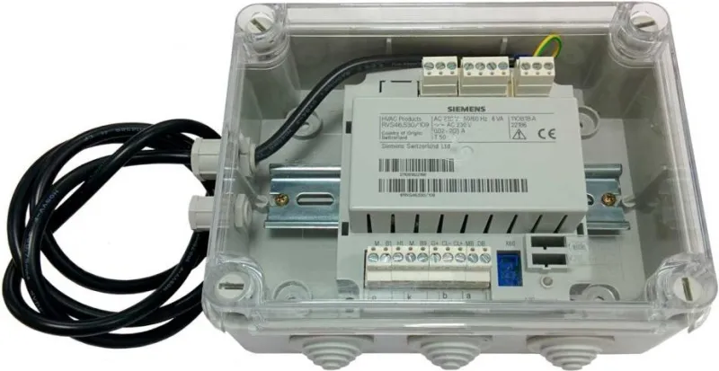 RVS 46 - внешний модуль для управления дополнительными контурами для конденсационных котлов. Используется с котлами LUNA Duo-tec MP. Модуль поставляется в белом коробе для настенного монтажа, устанавливается снаружи и является программируемым контроллером. Соединяется с котлом через низковольтную LPB-шину, не более 12 В. Расширяет возможности электронной платы котла. Позволяет управлять одним смесительным контуром, например напольным низкотемпературным отоплением. Состоит из нескольких реле и клемных колодок для подсоединения котлов, насосов и датчиков температур. Потребляет напряжение 220 вольт.