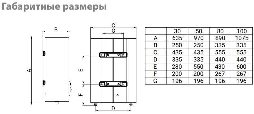 Примечание 1Время нагрева всего объема с 10 до 75°С при полной мощности нагрева и расчитано при идеальных условия окружающей среды