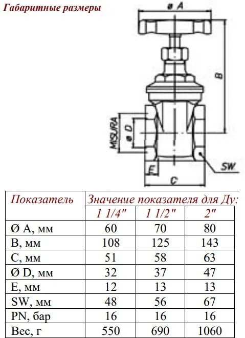 Характеристики товара Задвижка клиновая 1¼"в x 1¼"в Valtec VT.012.RG.07