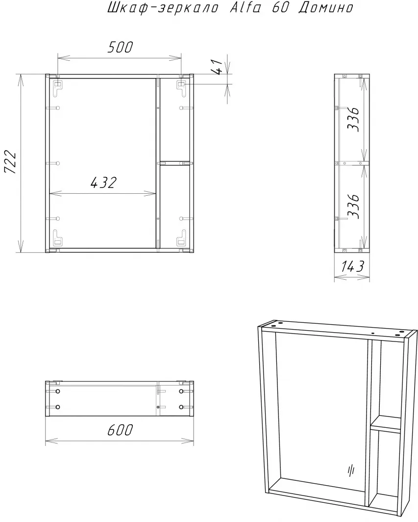 Характеристики товара Зеркало Домино Alfa 60 дуб галифакс табак DA6103HZ