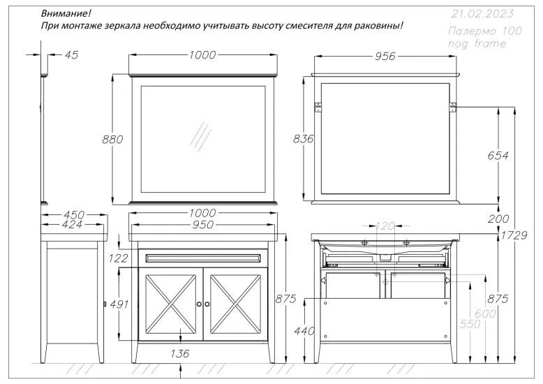 Характеристики товара Зеркало Opadiris Палермо 100 белый 00-00006728