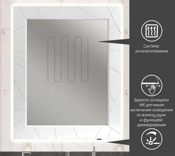 Характеристики товара Зеркало с подсветкой Opadiris Луиджи 80 белый матовый 00-00006554